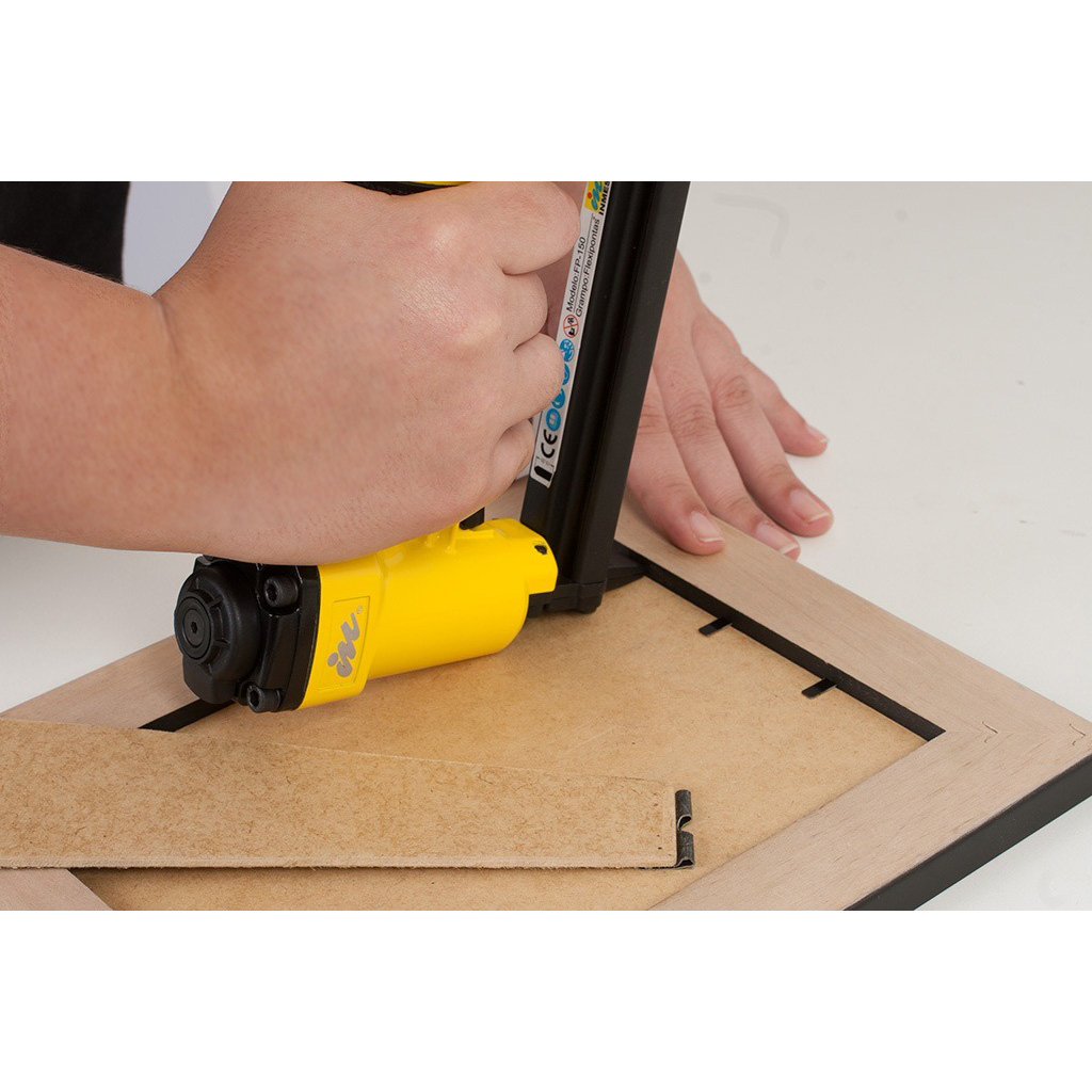 Las grampas son accesorios esenciales para el montaje de marcos de cuadros, espejos y portarretratos. Desempeñan un papel fundamental al garantizar el cierre preciso del marco y la sujeción segura del fondo, lo que proporciona un acabado impecable.